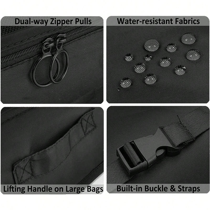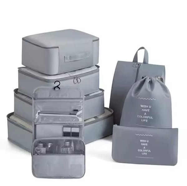 سافر بسهولة ونظام مع طقم منظمات الحقائب المكون من 8 قطع عملية تساعدك على ترتيب الملابس والأغراض بطريقة ذكية وتوفير المساحة داخل الحقيبة. مصنوع بجودة عالية ليسهل عليك الوصول إلى كل شيء بسرعة ويحافظ على أغراضك مرتبة أثناء السفر.