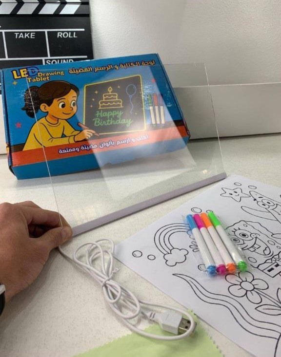 لوحة الرسم السحرية المضيئة LED مع 4 أقلام وقطعة مسح